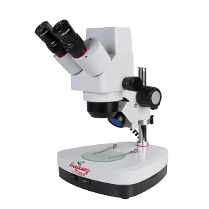 Тринокуляр. Увеличение 10-40 (при дополнительной комплектации 2,5-160). Рабочее расстояние 85 мм (при дополнительной комплектации 28-172 мм). Источник света - встроенный осветитель отраженного и проходящего света с регулировкой яркости