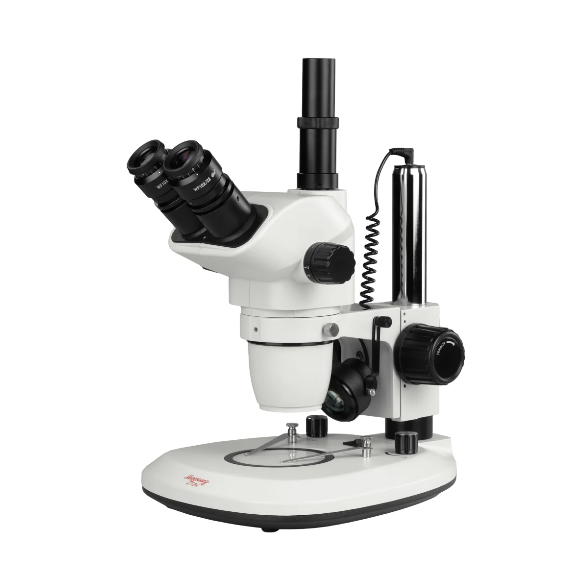 Стереомикроскоп с переменным увеличением 6,7х-45х в базовой комплектации. Постоянное рабочее расстояние 105 мм на всех значениях увеличений. Дополнительные оптические насадки. Встроенные осветители отраженного и проходящего света на светодиодах. Тринокулярная визуальная насадка.
