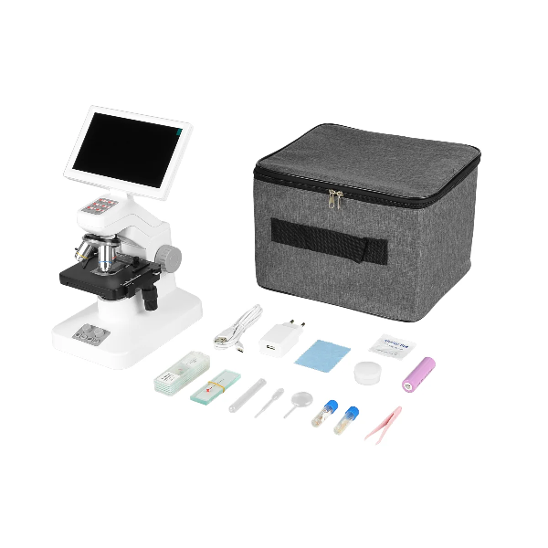 Устройство визуализации микроскопа на основе цифровой 3Мр камеры и IPS монитора 7” позволяет в режиме реального времени наблюдать изображение на мониторе микроскопа и проводить необходимые исследования при групповых занятиях. Жидкокристаллическая матрица c технологией IPS позволяет наблюдать отчетливое изображение с углами обзора до 170⁰ без затемнения, это позволяет участвовать в исследованиях нескольким лицам и проводить наблюдения с комфортом. Разрешение монитора 1024 х 600 точек.